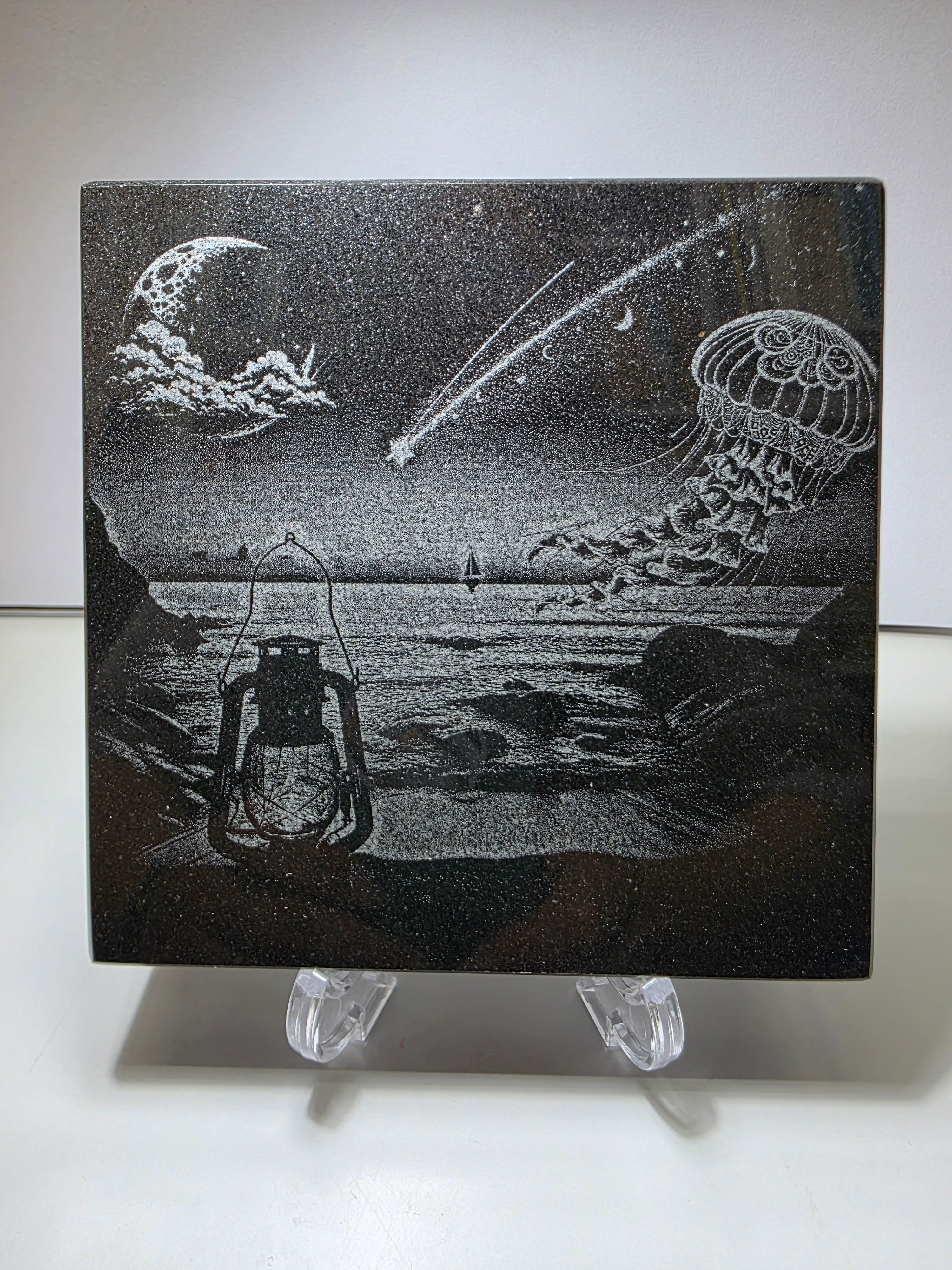 天然の黒御影石を使用した、オリジナルのデザインが彫刻可能なデザインプレートです!